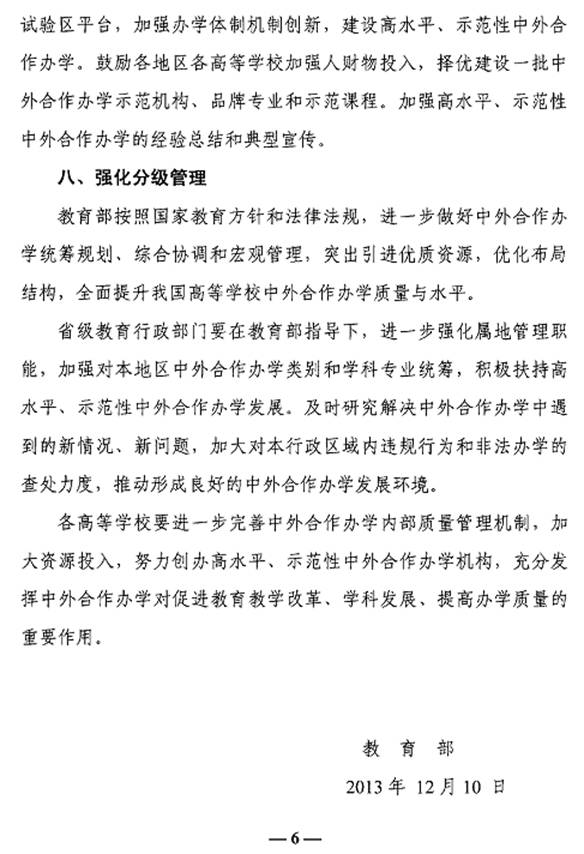 《教育部关于进一步加强高等学校中外合作办学质量保障工作的意见》(教外办学[2013]91号)