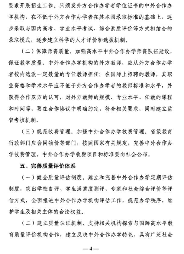 教育部关于进一步加强高等学校中外合作办学质量保障工作的意见